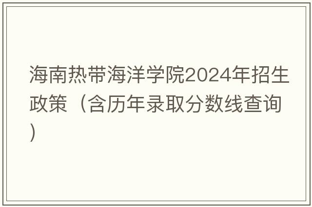 海南热带海洋学院2024年招生政策(含历年录取分数线查询)